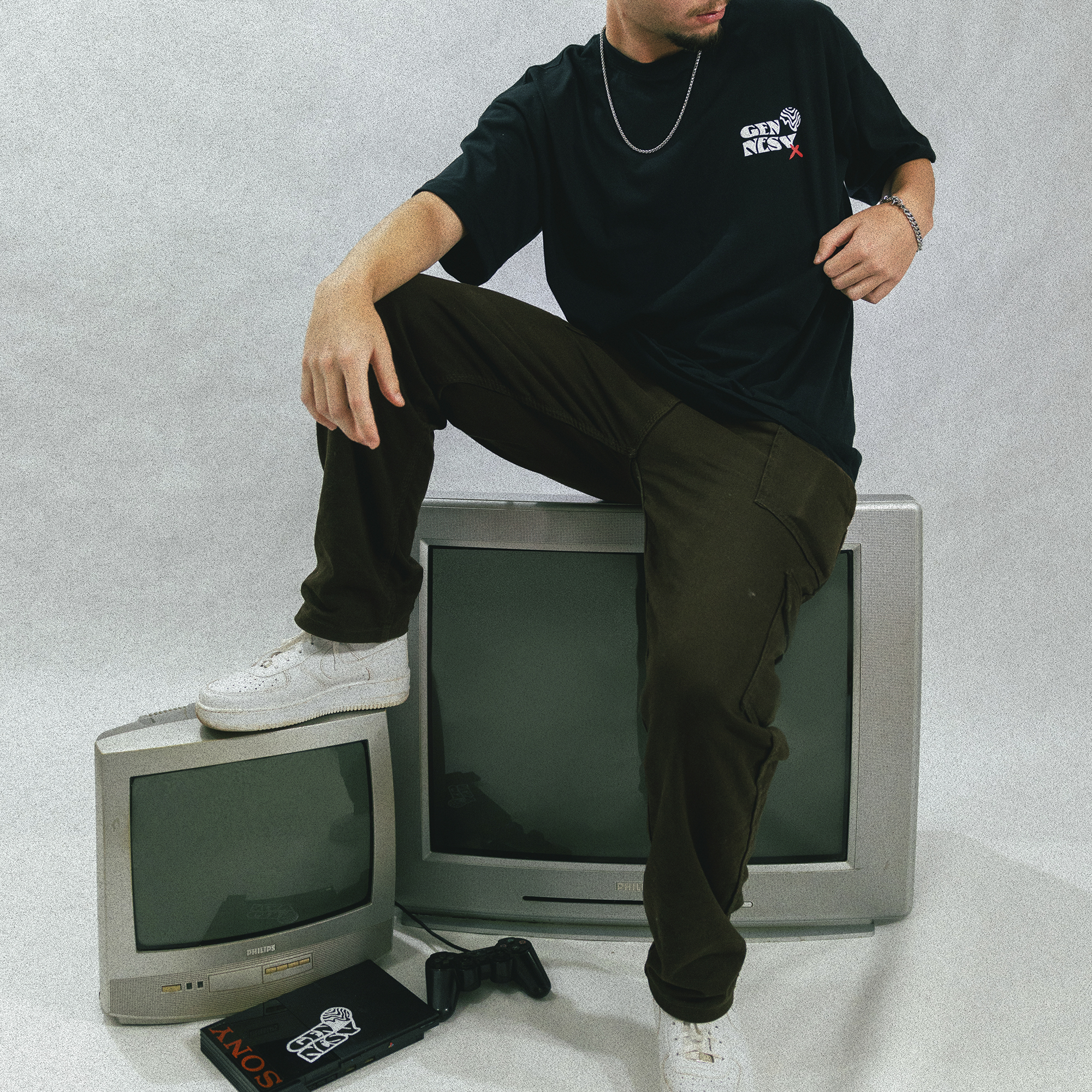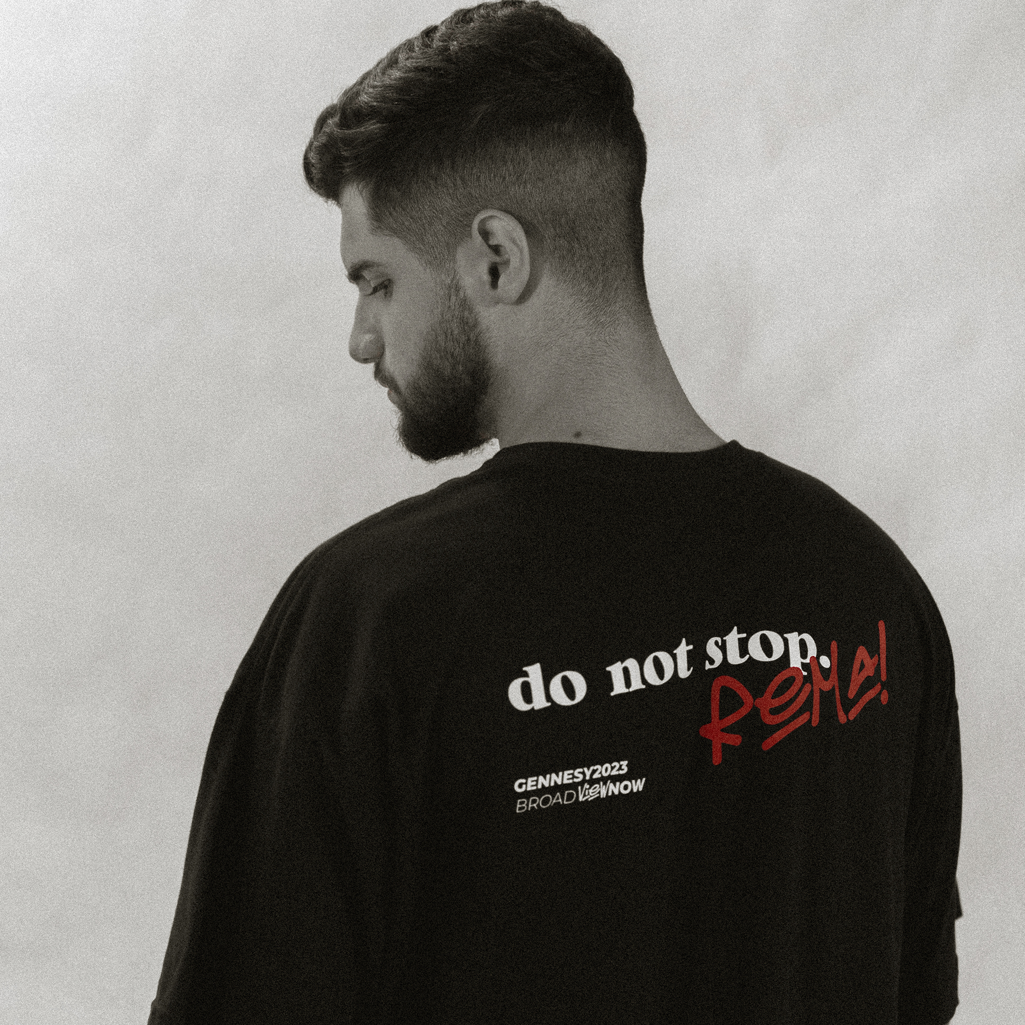 Camiseta Oversized “Visão Ampla” em malha 100% algodão na cor preta, estampa frontal e traseira em silk.